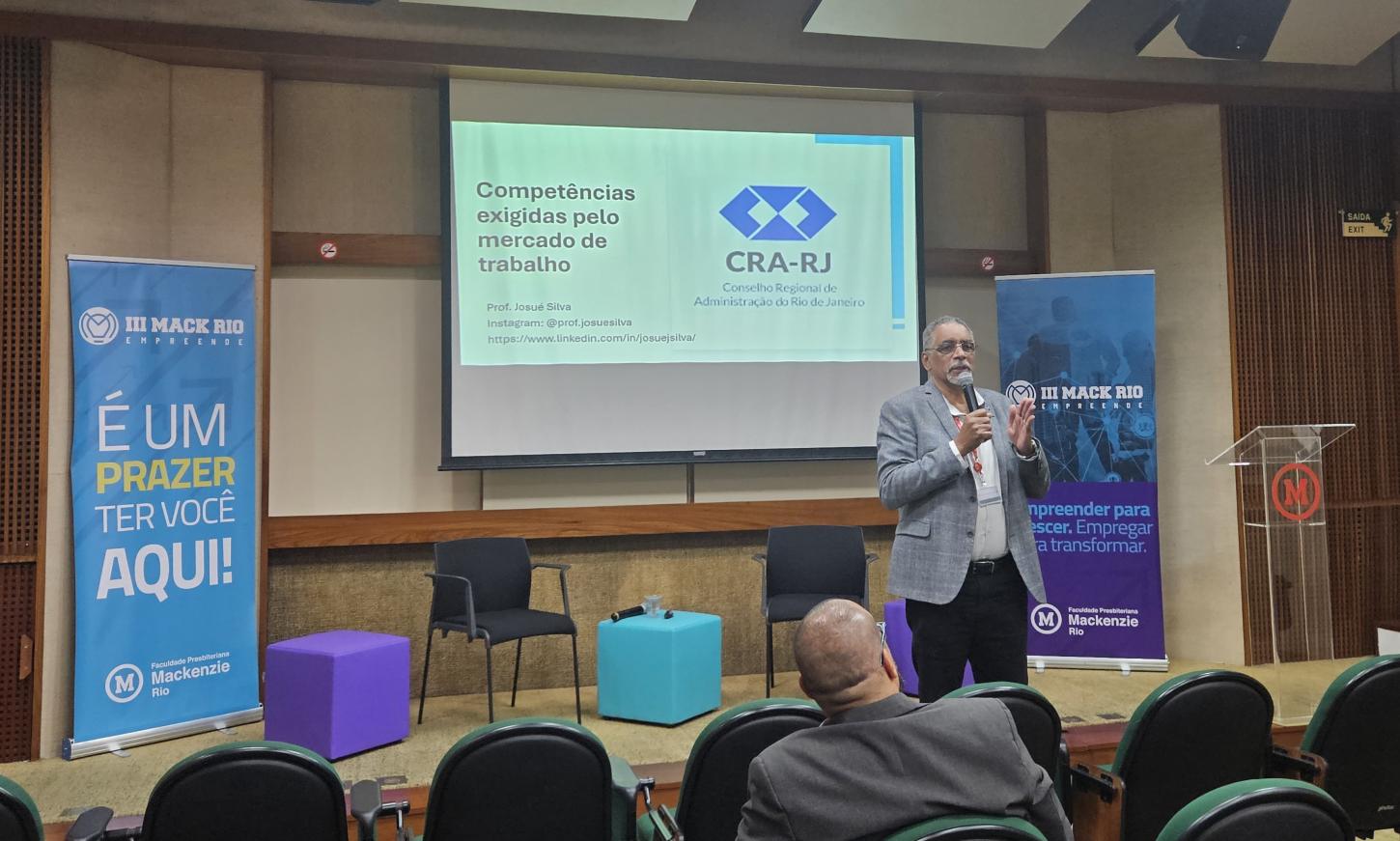 O docente, que também é vice-presidente do Conselho Regional de Administração (CRA) do Rio de Janeiro, durante a sua apresentação falou sobre o tema "Competências exigidas pelo mercado de trabalho" e comentou: “Mais do que dominar técnicas, modelos e ferramentas, o profissional do futuro precisa desenvolver habilidades humanas como a comunicação, a escuta ativa e a resolução de conflitos. O MackRio Empreende nasce exatamente para isso, aproximar o estudante de desafios reais, mostrando que, sem soft skills, as hard skills não se sustentam.”
